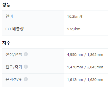 연비또한 상당한편인데 발표보다 잘나오는 경우가 많습니다. 16.2km 아주 준수한 연비를 보여줍니다.
