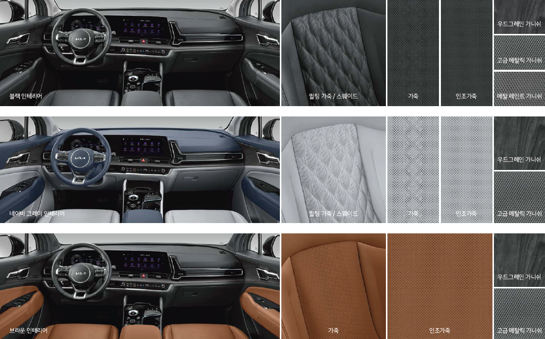 역시나 현대기아의 자랑인 선택의 폭이 넓은 시트와 내장컬러조합입니다.
