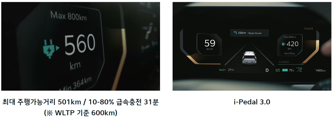 크기는 소형SUV의 사이즈로 셀토스와 비슷할것으로 예상됩니다. 파워트레인은 두가지로 나뉘어지는데요. 스탠다드와 롱레인지로 나뉩니다. 스탠다드는 58.3kWh 의 배터리를 탑재했고, 주행거리는 대략 400키로 조금 안될것으로 보이고, 81.4kWh 의 배터리를 탑해한 롱레인지는 공개된바로는 501키로미터를 달릴수 있다고 합니다. 드디어 500키로이상의 전기소형 suv가 등장하네요. 500키로 이상이면 사실 국내 어느도시를 가도 남을만큼의 주행거리인데요. 충전인프라만 골고루 갖추어 진다면 크게 성공할것같네요. 최고출력은 150kW 에 280토크를 낸다고 하네요.