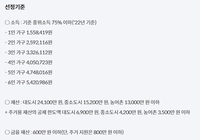 재산은 도시의 경우 24,100만원, 중소도시 15,200만원, 농어촌 13,000만원 이하의 재산이 있어야 하고,