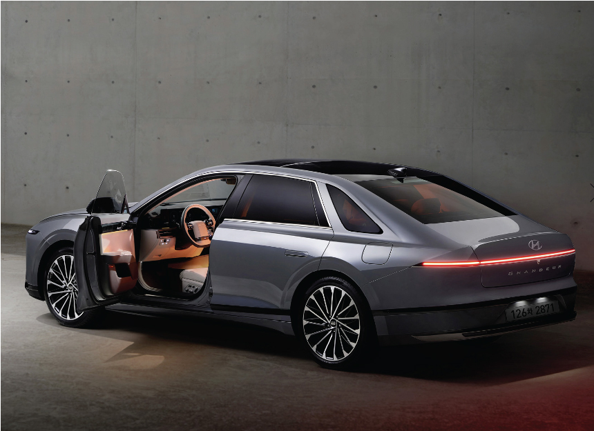이번에 디자인은 호불호가 많이 갈리는듯했지만, 역시나 보면볼수록 수트입은듯한 간결함이 지루하지 않게 보여줍니다. 특히 이전 그랜저의 지나친 젊음을 많이 떨쳐낸듯하여 개인적으로는 상당히 잘한 부분이라고 봅니다. 사이즈가 한층커지면서 어쩌면 예전 에쿠스급의 떡대를 자랑하는데, 현대차의 기함으로 매우 적절한 선택이라고 생각합니다. 초기형 그랜저의 핸들, 외부 쿼터글라스의 채용은 지극히 각그랜저에서 나온 오마주이며, 전체적인 실루엣또한 각그랜저를 최대한 느낄수있게끔 디자인되어있네요.