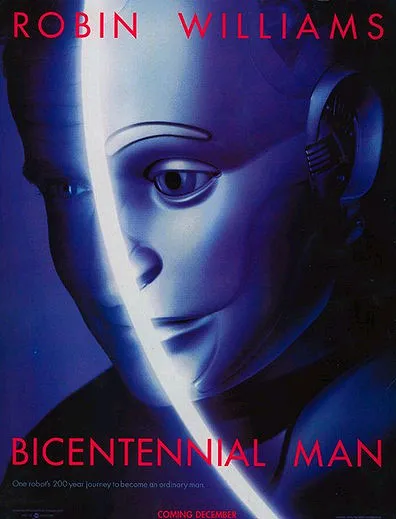 바이센테니얼맨은 1999년에 아이작아시모프의 sf소설을 영화화한 작품이다. 가까운 미래 로봇회사에서 가사도우미가 출시되었다. 모든 가정에서 가사도우미 로봇을 이용중이고 평범하게 살아가고 있다. 로봇의 이름은 앤드류. 앤드류는 로봇이지만 주인집의 딸인 맨디는 앤드류에게 나무조각을 만들어주면서 창의성이 살아나기 시작한다. 로봇회사조차도 이런 로봇의 창의성을 생각을 못했는데, 앤드류에게 이런 부분이 나타나기 시작했다. 스스로 장식을 만들어 팔아서 주인집에 보탬이 되도록 했고, 은행계좌까지 만들어 관리도 했다. 그렇게 서서히 앤드류는 자아를 만들기 시작했고, 시간은 점점 흐르면서 맨디의 자손들까지도 도우미를 자청하며 돕고 있다. 법적으로 인간의 권리를 작게나마 얻은 앤드류는 좀 더 인간에 가까워지기 위해 최신의 신체로 교체를 하게 된다. 스스로 지식을 얻고 공부하여 인간의 신체 부분을 인공으로 제작하여 의학적으로 인류에 공헌을 하게 된다. 그러면서 맨디의 손녀인 포샤와 사랑에 빠지고 결국 인간으로 인정해 달라는 소송을 제기한다. 하지만 재판정은 인정을 하지 않게 되고, 결국 인간과 똑같이 수명을 부여하기 위해 인공장기를 자연스럽게 연장이 되지 않도록 한다. 이후 다시 회의를 열게 되고, 드디어 앤드류가 200살이 되는 날 인간이라고 인정하게 된다. 그리고 포샤는 이미 숨을 거둔 앤드류 곁에서 생명유지장치를 스스로 정지시켜 앤드류와 함께 죽음을 맞이한다.