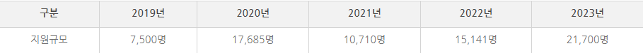 지원규모는 해마다 늘어서 2019년 당시 7500명이었던 지원상황이 올해는 21700명으로 늘었습니다.