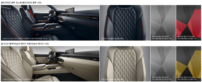 스포츠사양의 시트옵션입니다. 일반 시트옵션도 퀼팅모양만 다를뿐 상당히 고급스러운 느낌이 납니다.