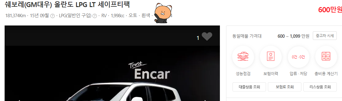 엔카기준 오른쪽 성능점검과 보험이력둘중에 하나만 보셔도 됩니다.