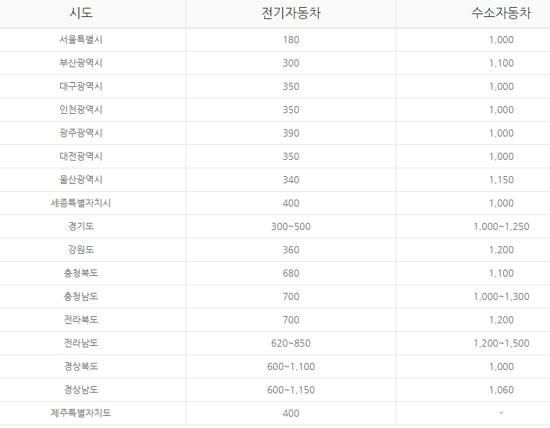 지역별로는 서울 180이 가장적고 전라도, 경상도가 제일 많이 받을수 있네요. 국고보조금과 지자체보조금을 합치면 서울의 경우 860만원을 받을수 있고, 경상남도의경우 1830만원의 최대치를 받을수 있습니다. 지역별 보조금지급현황이 궁금하시면 아래 들어가셔서 확인할수 있습니다.