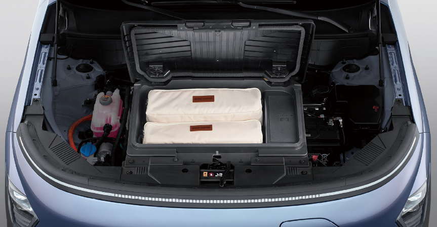 프렁크는 살짝 아쉽네요. 엔진대신 가방이 들어있는듯한 모습인데 좀더 깔끔했으면 어떨까 싶습니다.