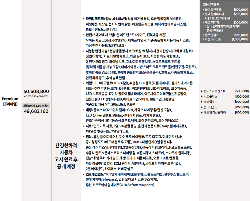 - 코나 일렉트릭 옵션