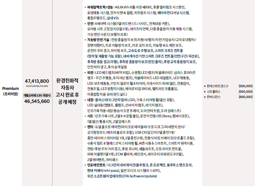 ===코나 일렉트릭 가격표===