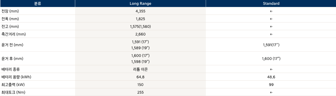 이전모델보다 10센티이상 길어지면서 제법 날렵한 모습을 보여줍니다. 실내공간도 상당히 넓어졌습니다. 배터리용량은 64.8, 일반모델은 48.6입니다. 일반보다 롱레인지의 출력이 훨씬좋네요. 롱레인지는 최대거리 417킬로를 달릴수 있습니다. 일반모델은 300키로대로서 장거리는 조금 어려울수 있겠습니다.