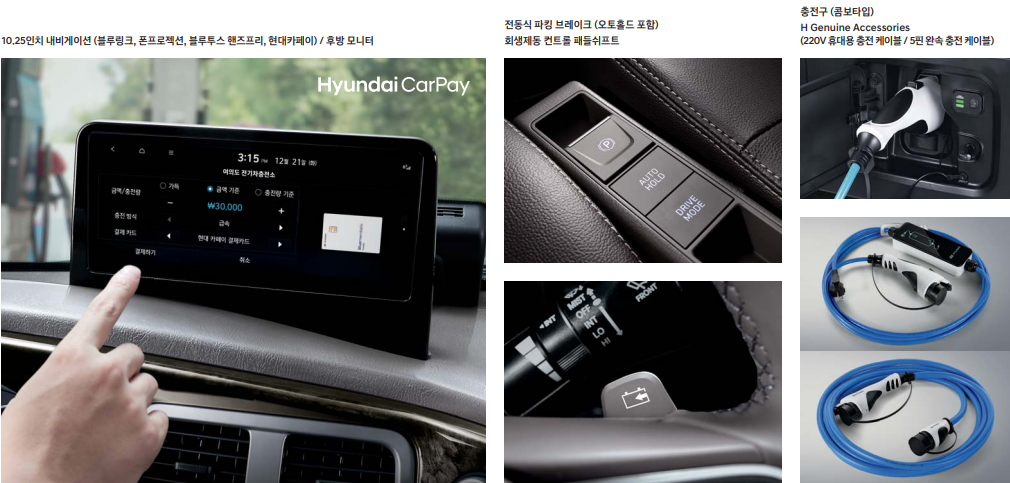 전자식 파킹 브레이크와 네비게이션은 블루링크가 됩니다.