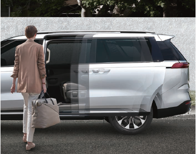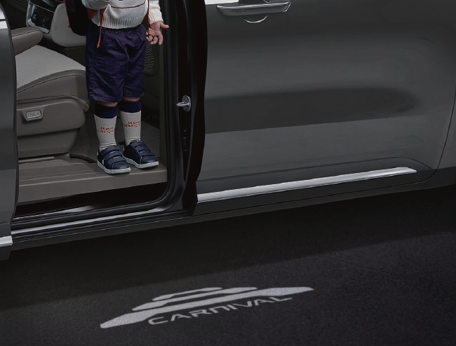 전동슬라이딩도어가 스마트키를 소지한채 다가가면 자동으로 열립니다. 또한 승하차시 로어라이트를 통해서 안전을 도모합니다.