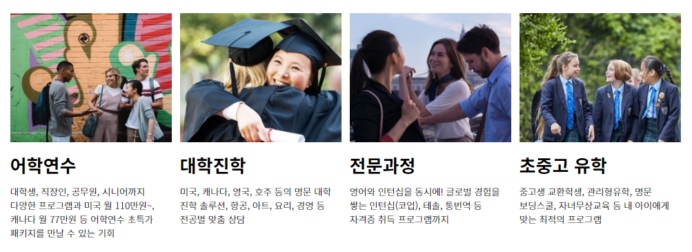 어학연수 / 학위유학 / 전문과정 / 조기유학