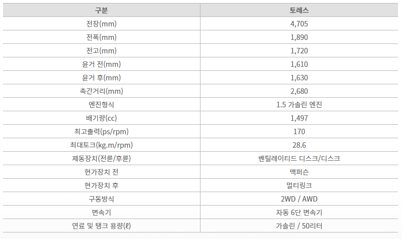 ===2023토레스 가격표===