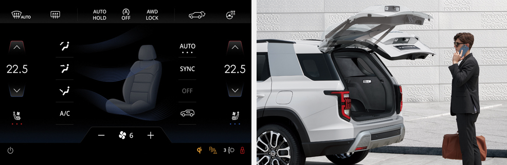 아래 모니터부분에서 공조장치를 조절할수있습니다. 전동식테일게이트도 옵션으로 제공됩니다.