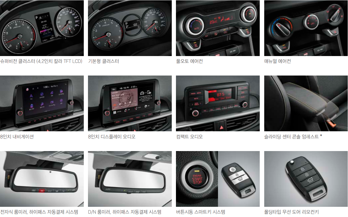 기본모델의 옵션입니다. 확실히 최신의 차량이다보니 편의장치들이 업그레이드되었네요.