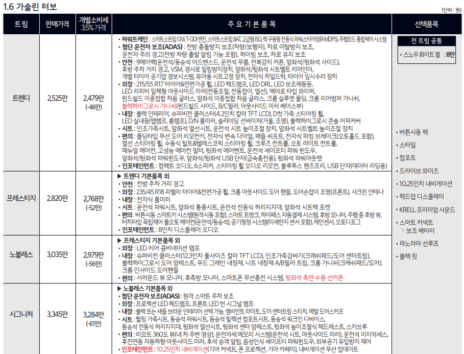 가성비측면에서 보면 확실히 1.6 가솔린 터보가 유리합니다.