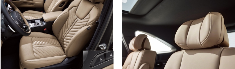운전석 에르고 모션시트는 운전중 더 편안한 착좌감을 제공합니다. 날개모양의 헤드레스트는 머리를 좀더 잘 잡아줍니다.