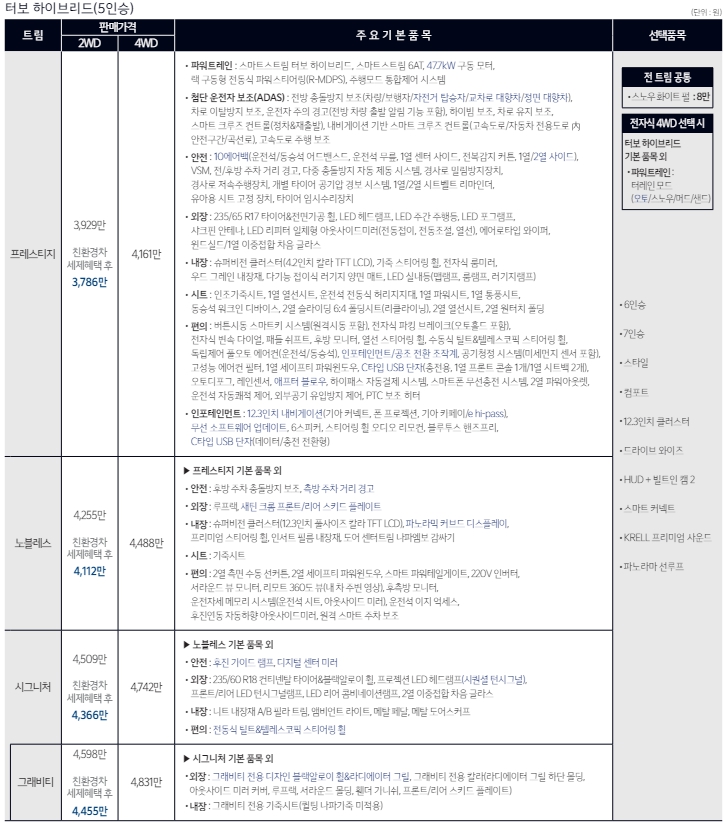 | 2024 기아 스포티지 최신 가격표 와 제원(하이브리드) (1) | 2024.05.16 |