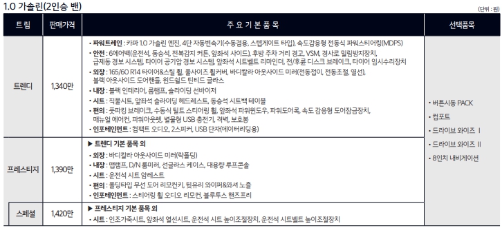 ===2024 기아 레이 가격표===