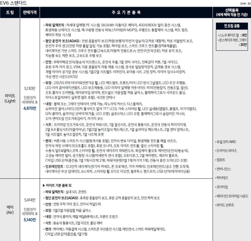 기존과 다른부분은 없습니다. 후측방 모니터는 지금은 필수옵션으로 자리잡고 있습니다. 그외에 빌트인캠은 현재 2.0 버전이 나온상태인데, EV6에 적용이 되어있는지는 확인해봐야 할것같네요. 구형 빌트인캠은 개인적으로 비추천옵션입니다.