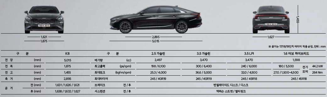 - 2024 기아 K8 제원