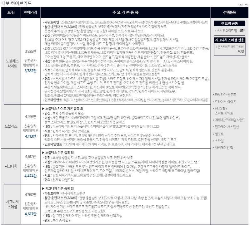 2024 현대 디올뉴그랜저 (하이브리드) 최신가격표 제원