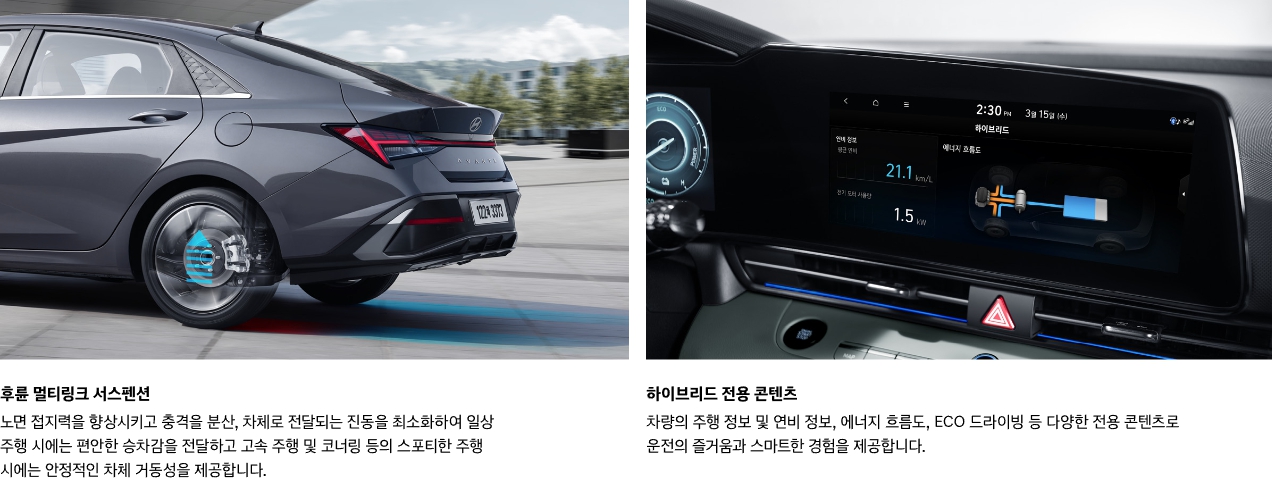 하이브리드는 후륜을 멀티링크로 제공합니다. 승차감향상에 큰 도움이 됩니다.