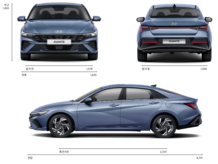 제원은 2023 아반떼와 동일합니다. 엔진사양도 동일합니다.
