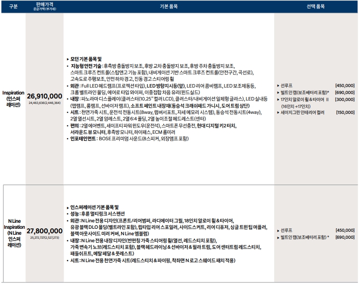 ===2024 더뉴 아반떼 하이브리드 가격표===