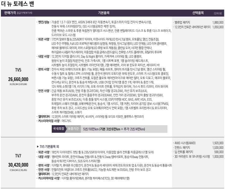 ===2024 KG 모빌리티 더뉴 토레스 가격표===