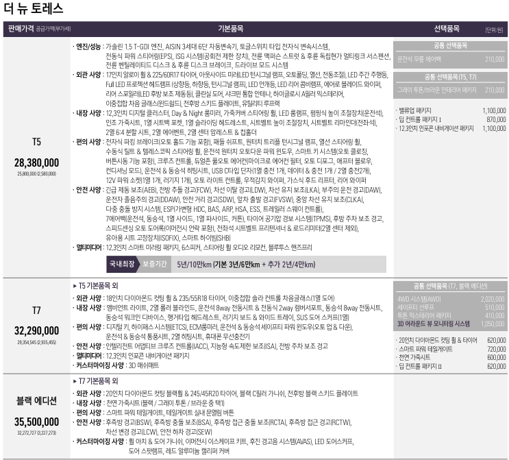 ===2024 KG 모빌리티 더뉴 토레스 가격표===