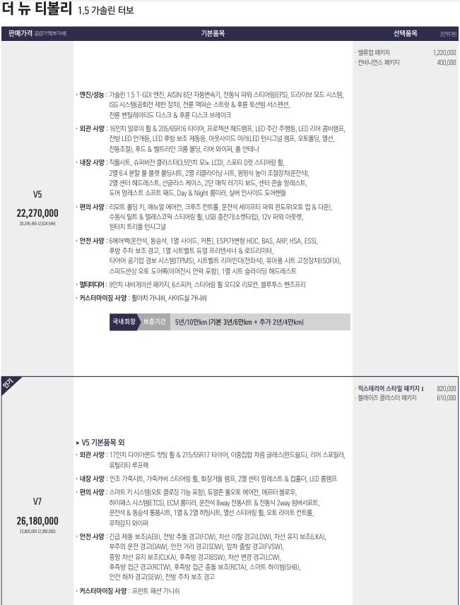 ===2024 티볼리 가격표===