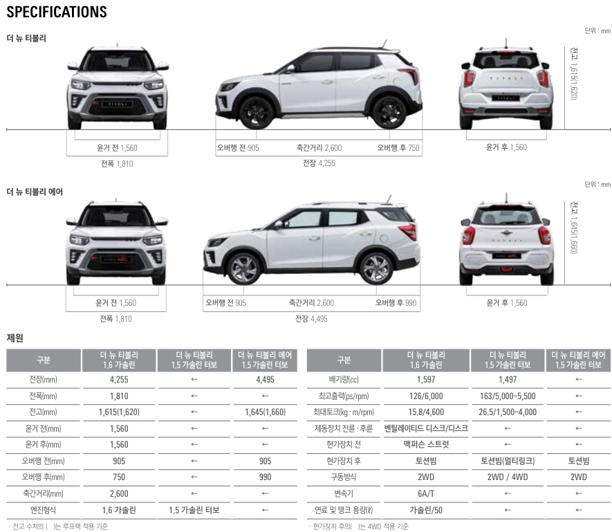 2024 더뉴 티볼리 제원