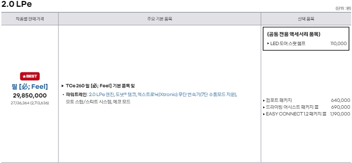 정확한 가격과 옵션등은 공식 PDF를 다운로드 하시면 확인가능합니다.