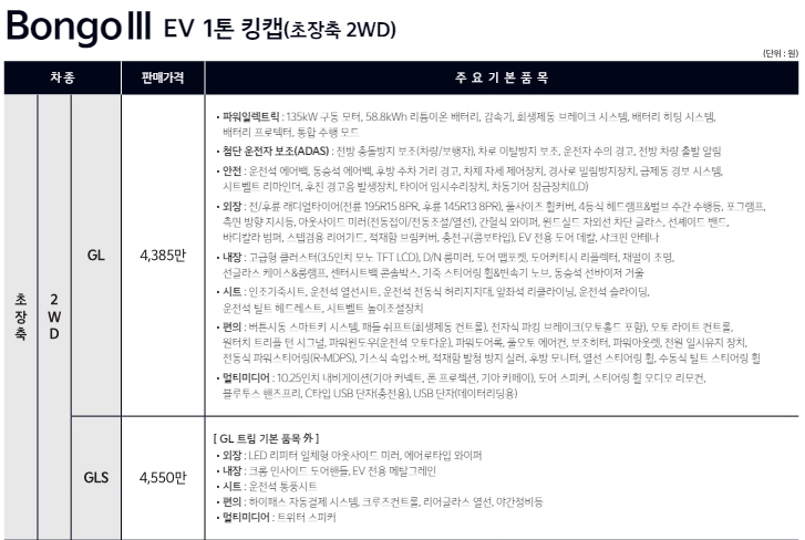 이제는 마지막 모델이 될 봉고3입니다. 가격이 LPG 단일이 되면서 디젤보다 100만원이상 인상된 부분은 좀 아쉬운 부분이네요. 전기모델의 경우도 년식이 올라갈수록 보조금이 줄어들기때문에 가격적 메리트가 조금씩 떨어지고 있습니다. 현재는 많은 부분 혜택이 있어서 가성비로 좋지만 후속모델이 출시되면 여러가지 안전사양이 기본적용 되기때문에 가격은 많이 오르지 않을까 생각이 듭니다.