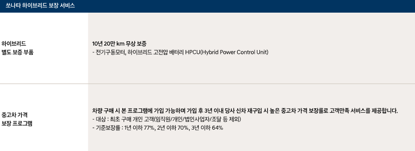 하이브리드는 구동모터와 배터리에 한해서 10년에 20만키로 무상보증을 실시합니다.
