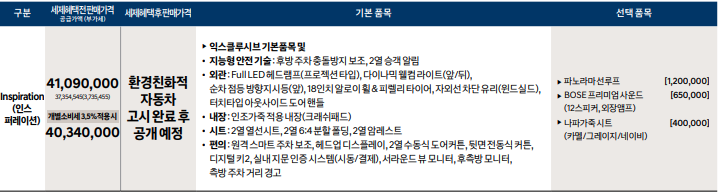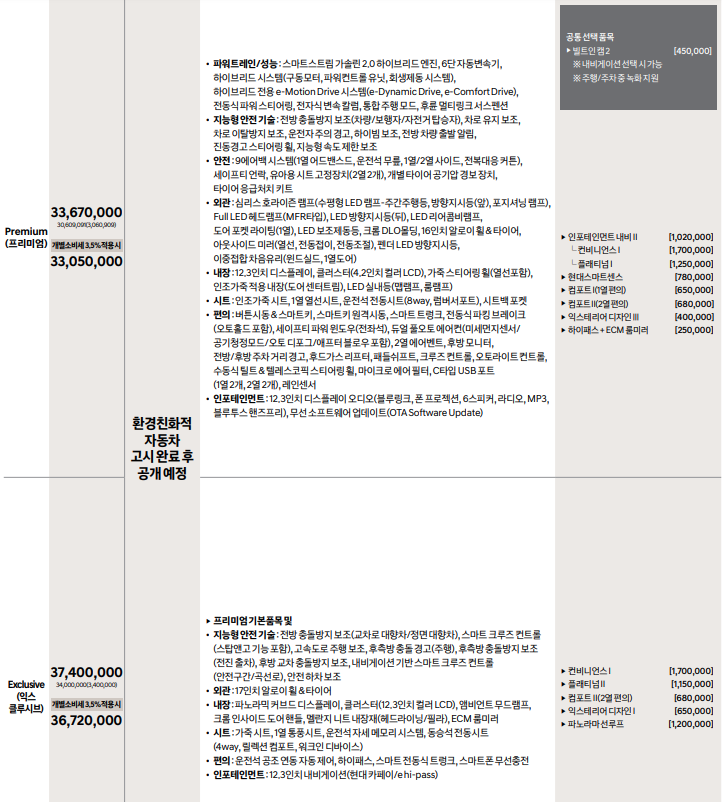 ===쏘나타 디엣지 하이브리드 가격표===