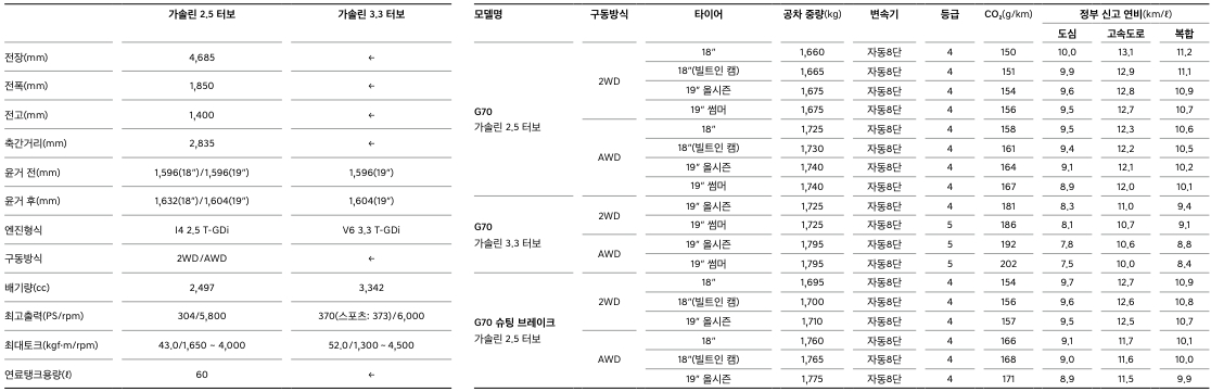 제네시스 G70 제원