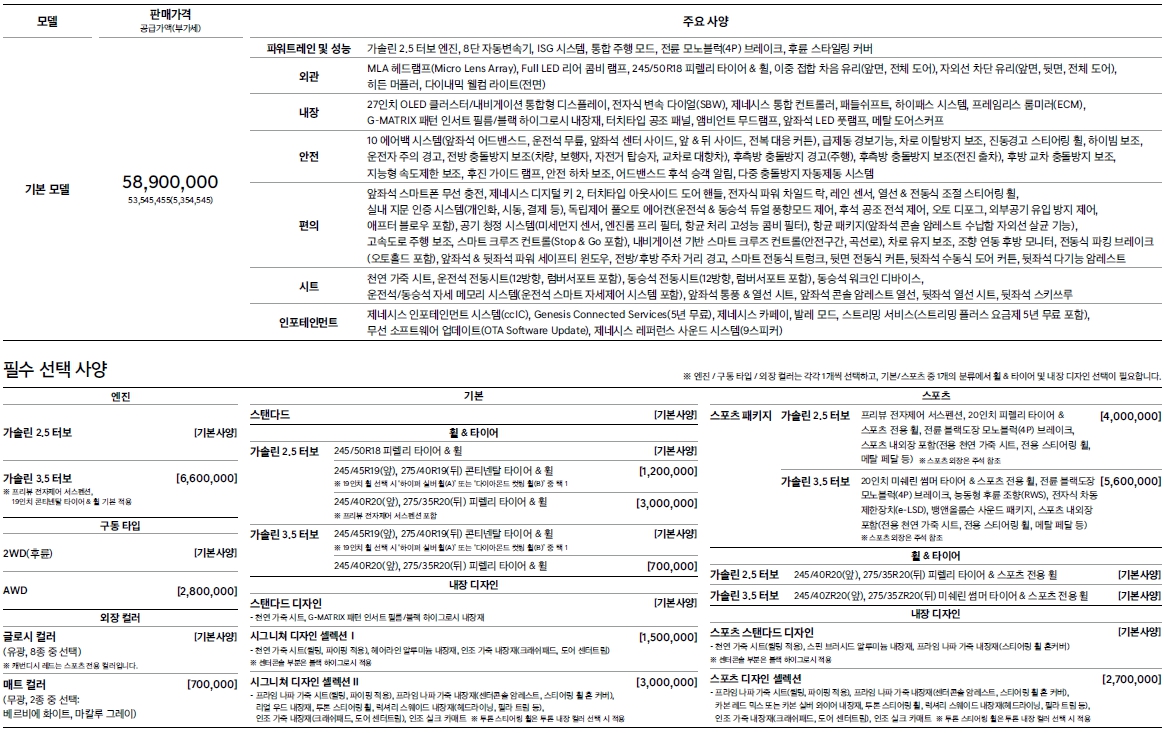 • 2024 제네시스 G80 옵션