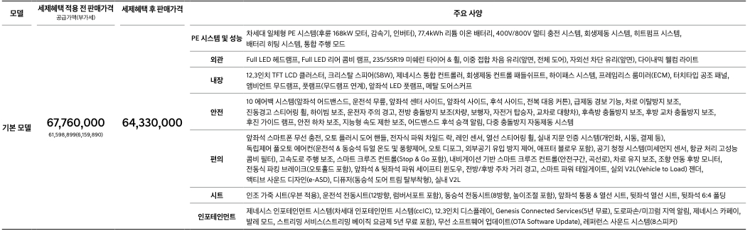 ===제네시스 GV60 가격표===