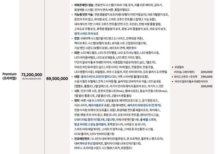 넥쏘는 한가지 트림만 운용중입니다. 세제혜택후 6950만원인데요. 수소차량은 전기차량보다 보조금이 훨씬 높습니다. 거기에 지자체 보조금까지 포함하면 대략 3000만원초반에 구입이 가능합니다.