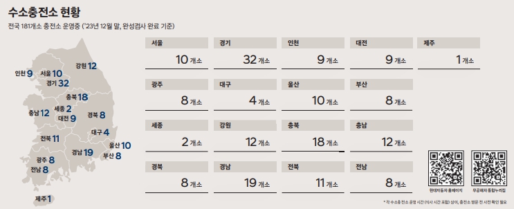 수소차량 충전소 : 충전소가 아무래도 많이 보급은 안되어있어서 장거리 운행시 불편함이 있습니다.