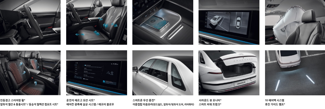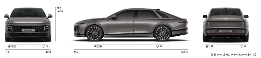 엔진사양은 2.5가솔린과 3.5가솔린, 3.5 lpg, 하이브리드가 있습니다. 볼륨모델인만큼 여러가지 엔진사양을 가지고 있습니다. 이중에 가솔린 2.5 스마트스트림모델은 개발한지 오래된 엔진이고, 개인적으로는 2.5모델보다 3.5모델이 아무래도 좋습니다. 2.5모델은 힘이 약한느낌이고 더군다나 기존에 여러모델에서 문제가 있던 엔진이라 개인적으로는 피하고 싶은 엔진이네요. 사이즈는 무려 5미터가 넘습니다. 기존에 지엠의 임팔라가 5100미리가 넘었었지만 이제는 그랜저가 가장 큰 준대형모델이 되었네요.