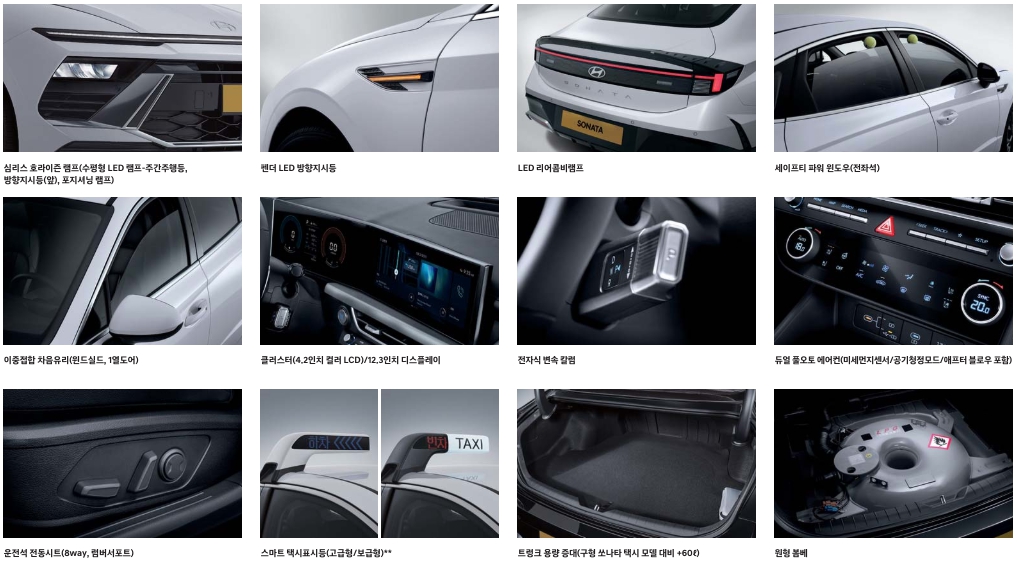 법인택시는 2480만원에, 개인택시는 2254만원에 구매가 가능합니다. 옵션으로는 스마트센스와 통풍시트가 있는데요. 아무래도 오랫동안 머무르는 공간이다보니 두개의 옵션은 넣어주는게 좋겠지요.