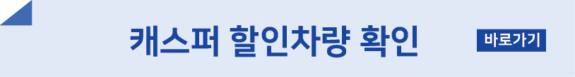 캐스퍼는 공식가격외에 할인가격을 올려놓고 구입할수 있도록 하고 있습니다. 아래 할인차량을 확인하시고 구입하시면 좀더 가성비있게 구매하실수 있습니다. 할인이벤트도 진행하고 있으니 꼭 방문해보시고 할인사양을 확인해보세요.