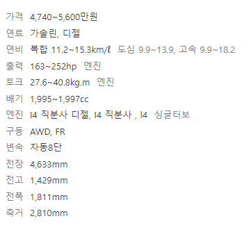 개인적으로는 F바디모델을 가성비의 끝판왕이라고 생각합니다. 실내의 올드함만 참을수 있다면 1000만원초반대에 구매할수있는 F바디를 추천합니다.